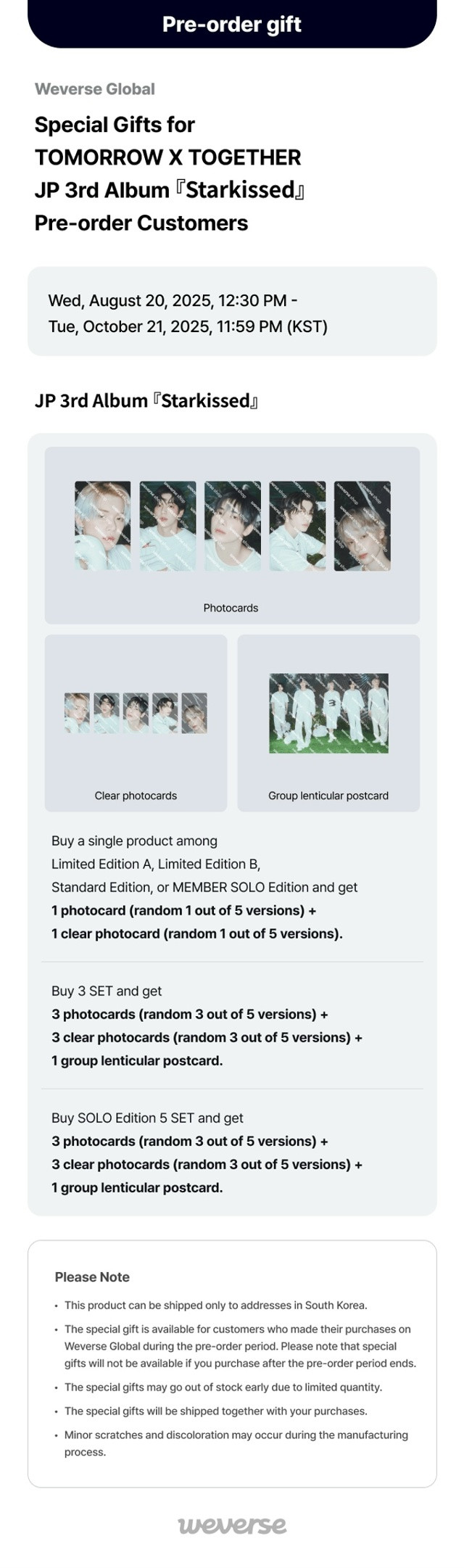 Айго открывает предзаказ на TOMORROW X TOGETHER - JP 3rd Album 『Starkissed』 pob Weverse