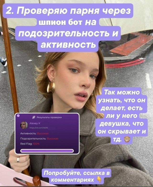 Не ждите неприятных сюрпризов — проверяйте своих любимых заранее через приложение РедФлаг. Ссылка уже в комментариях 👇