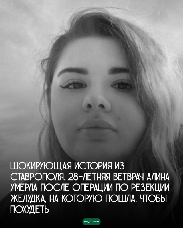 Шокирующая история из Ставрополя. 28-летняя ветврач Алина умерла после операции по резекции желудка, на которую пошла, чтобы похудеть