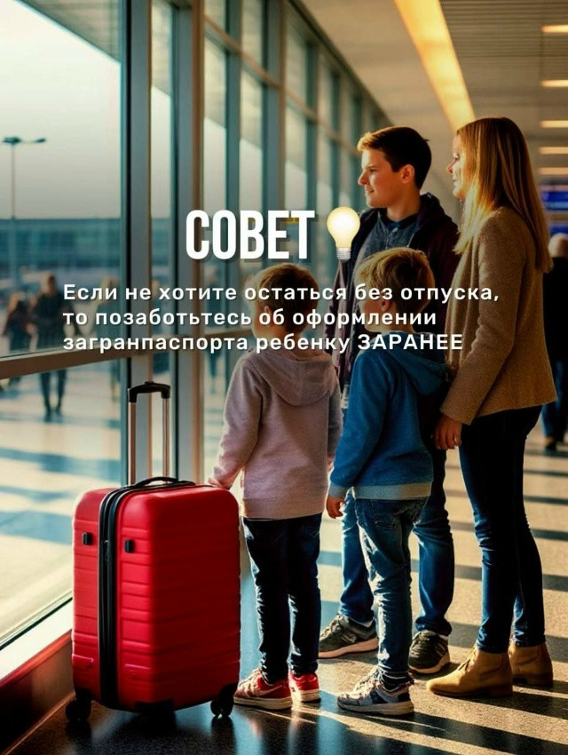 Заранее позаботьтесь об оформлении загранпаспорта ребенку, так как ближе к срокам, оформление загранпаспорта будет увеличиваться из-за большой очереди.