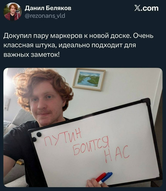 29 сентября 2024 г. обратился к мужскому населению Российской Федерации с призывом отказаться от участия в СВО на территории Украины: «Не берите повестки, не ходите в военкоматы, не живите по прописке, не открывайте двери, а если можете – уезжайте. Не дайте путинской власти вас убить».