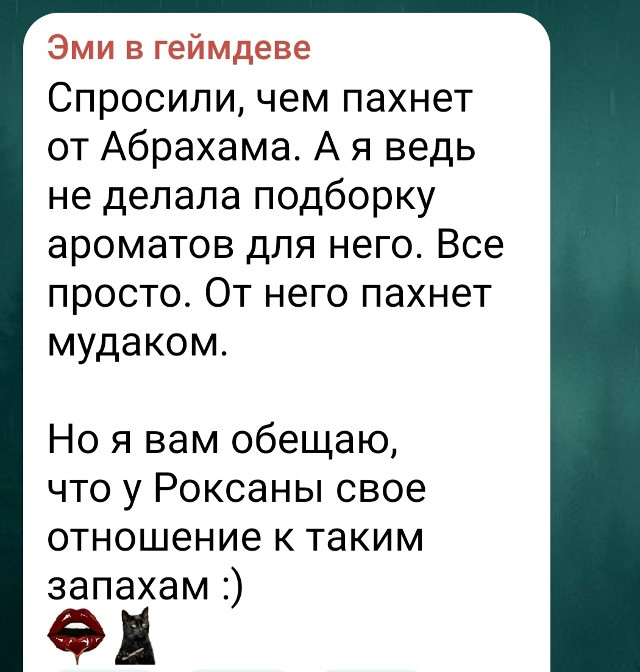 Мне очень понравилась эта сцена и я надеюсь, что сценаристка и дальше продолжит делать из него куколда хотя бы по пути совмещения, ибо ничего другого этот истязатель и мучитель в моём каноне не заслуживает 🙏🏻