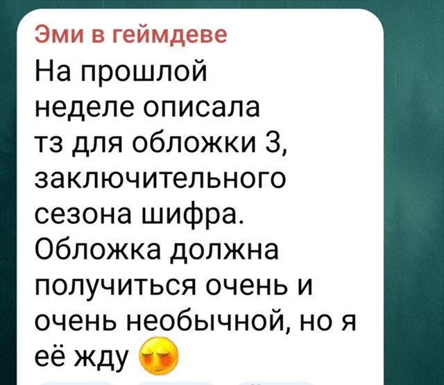 Тяжелее всего читать прошлое, то есть сценарий. Если настоящее идёт бодрее и даже вызывает желание узнать что будет дальше, то эти флешбеки во флешбеках кажутся бесконечными и до ужаса занудными. Причём каждый раз подвязка к этому максимально нелепая: Рея просит почитать сценарий, ГГ спрашивает, "откуда ты про него знаешь?", а она отвечает "так это все знают" 🗿