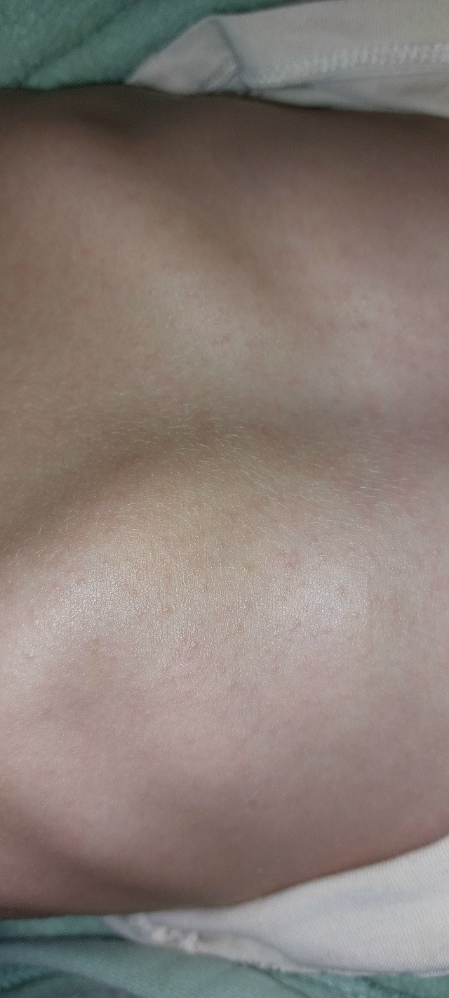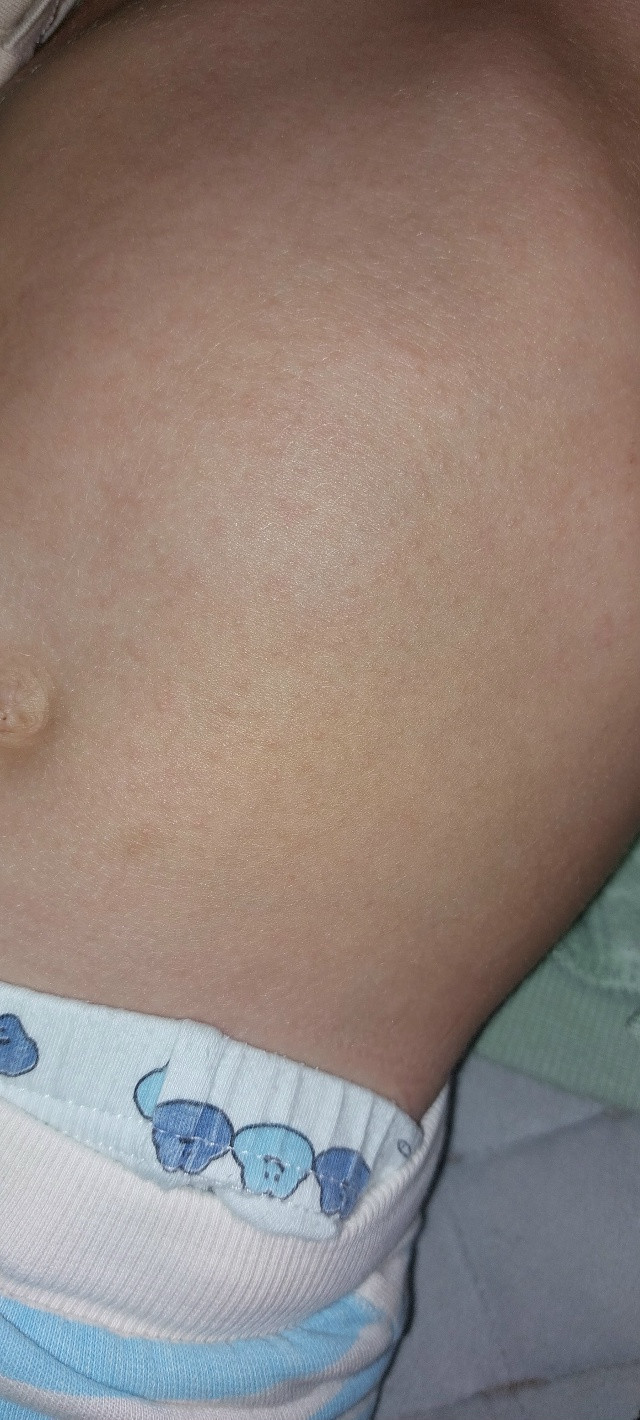 Вчера утром у ребенка (мальчик, 3.5 гола) появилась сыпь на животе, спине, шее и внутренней части рук. На ощупь сыпь - как мурашки, цвет - красноватый, но на загорелом теле особо не видно, только под определённым углом света.