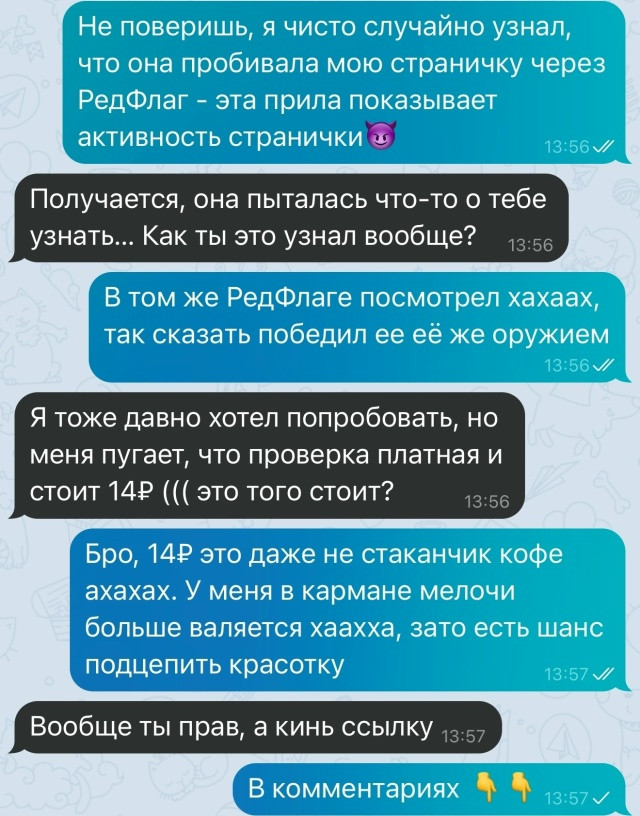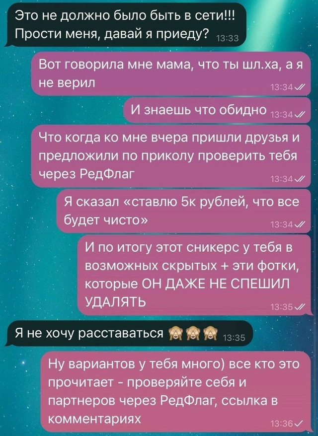 Не ждите таких неприятных сюрпризов — проверяйте своих близких заранее через приложение РедФлаг. Ссылка уже в комментариях 👇