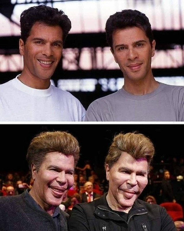 Французские телеведущие-близнецы прославились не только шоу, но и своей необычной внешностью. Они до конца отрицали пластические операции, хотя скулы и подбородки стали их визитной карточкой. Настолько яркой, что газета The Sydney Morning Herald писала: «Скулы у них такие высокие и луковицеобразные, что будто мешают им самим смотреть».