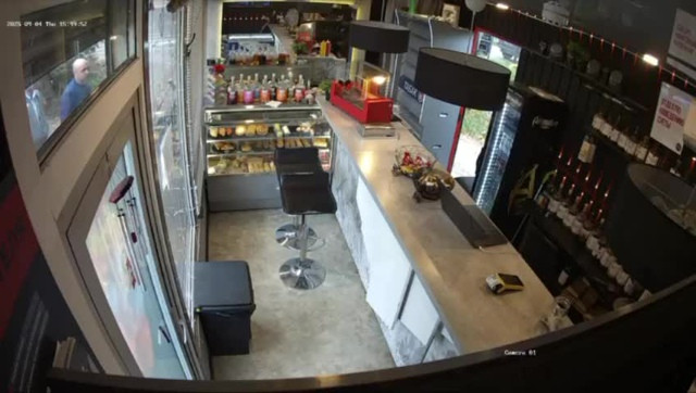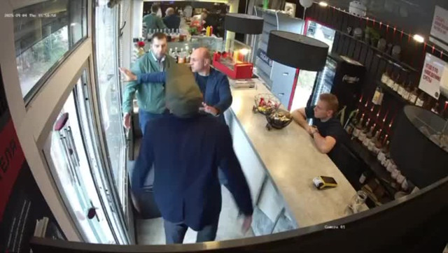Друзья зашли в кофейню, а следом за ними вошёл другой посетитель, который с порога ударил в лицо молодого человека в зелёной куртке.