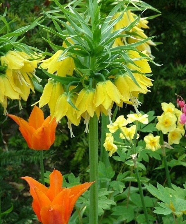Ранней весной, как только растает снег и лучи солнца начнут пригревать землю, в саду появляются крепкие молодые ростки императорских рябчиков, или фритиллярий. После зимы зрелище фантастическое. Хохолки из листьев придают рябчикам сходство с маленькими пальмочками; за это их иногда называют райскими деревьями. Стебли их высокие (до 120 см), грациозные и стройные, украшены крупными зонтиковидными соцветиями.