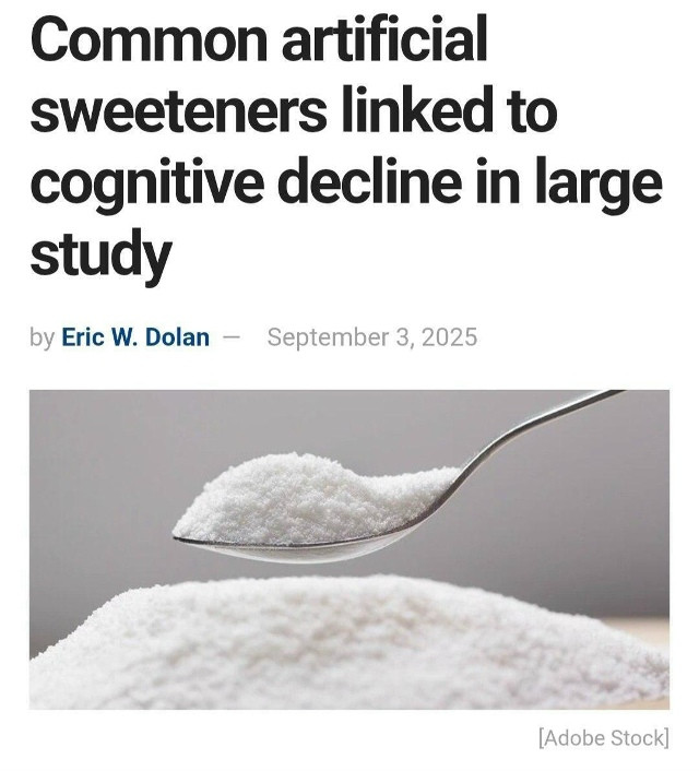 У любителей подсластителей мозг стареет на 62% быстрее, повышается риск инсульта и втрое чаще развивается деменция.