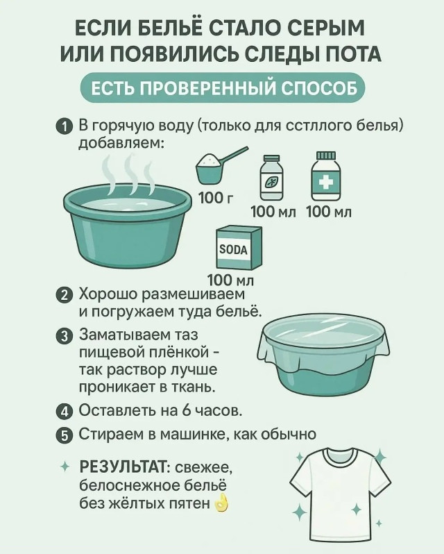 ✨ Результат: свежее, белоснежное бельё без желтизны и следов пота.