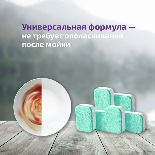 Удобство использования: Водорастворимая упаковка - просто поместите таблетку в специальный отсек посудомоечной машины,