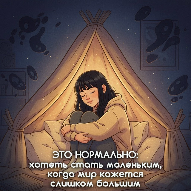 Это нормально — когда тебе грустно, страшно или ты просто перегружен, хотеть свернуться в самый маленький и плотный клубок. Спрятать голову, обнять колени, залезть под одеяло и стать как можно меньше. Это не инфантильное желание спрятаться от мира, а глубокий, древний инстинкт, заложенный в нашем теле.