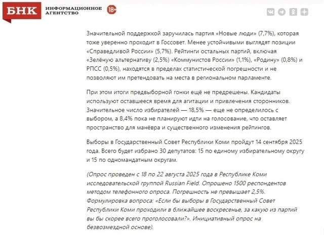 Некая исследовательская группа по телефону опросила полторы тысячи респондентов на предмет кому из партий они отдают свое предпочтение. По их расчетам получилось, что более 44% высказались в пользу партии «ЕР». По нашему глубочайшему мнению они могут не лукавить только в одном случае, если опрос «выборочно» проводился среди членов партии, а также руководителей предприятий, которые в немалой степени зависят от их генеральной линии.