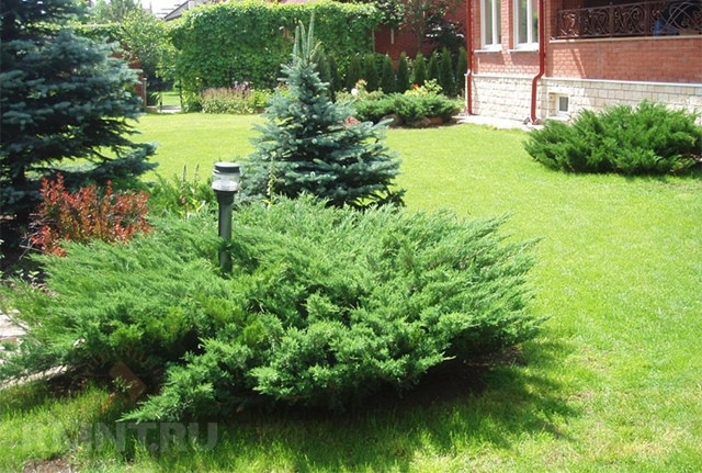 Беспроигрышный вариант, часто используемый ландшафтными дизайнерами, — сделать акцент на необычном растении. Поместить в центр сада группу хвойников с колючками зелено-голубого оттенка, сизыми или желтыми. А для оформления бордюров отберите низкорослый кустарник, например, можжевельник.