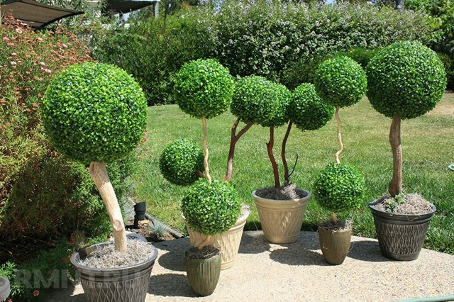 Нарядные клумбы, украшенные растениями шарообразной формы. Как вариант, самшитом вечнозеленым.