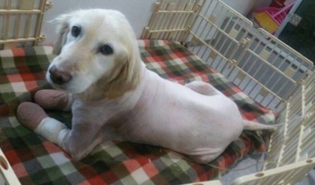 В Южной Корее, к сожалению, до сих пор едят собак, хотя это и стало с некоторых пор нелегальным. Одной из жертв подобных кулинаров стала собачка, напоминающая ретривера. Однако в ее травмированных лапах возникла инфекция, и ее просто вынесли на помойку, так как в пищу она не годилась. Девочку нашли зоозащитники, однако лапки собачки уже поразил некроз и их пришлось ампутировать. Активисты дали ей имя Чи-Чи, то есть Любящая.