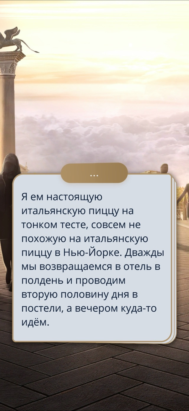 Как же я люблю историю, не могу. Пока прошла только слот с Таем, и это было чудесно. И сюжетно: получили реакцию всех членов императорской семьи на смерть принцессы, познакомились с принцем Эсшая, узнали мелкий секретик Велоры. И годнота с фаворитом – много нежностей и поцелуев. Из минусов – уже очень хочется во что-нибудь эти поцелуи уже развить) Очень повеселил способ, которым Тисс попала во дворец семейства, куда Гриаран отправила письмо, лодочника было немного жалко. И очень тронули взаимоотношения между летунами.