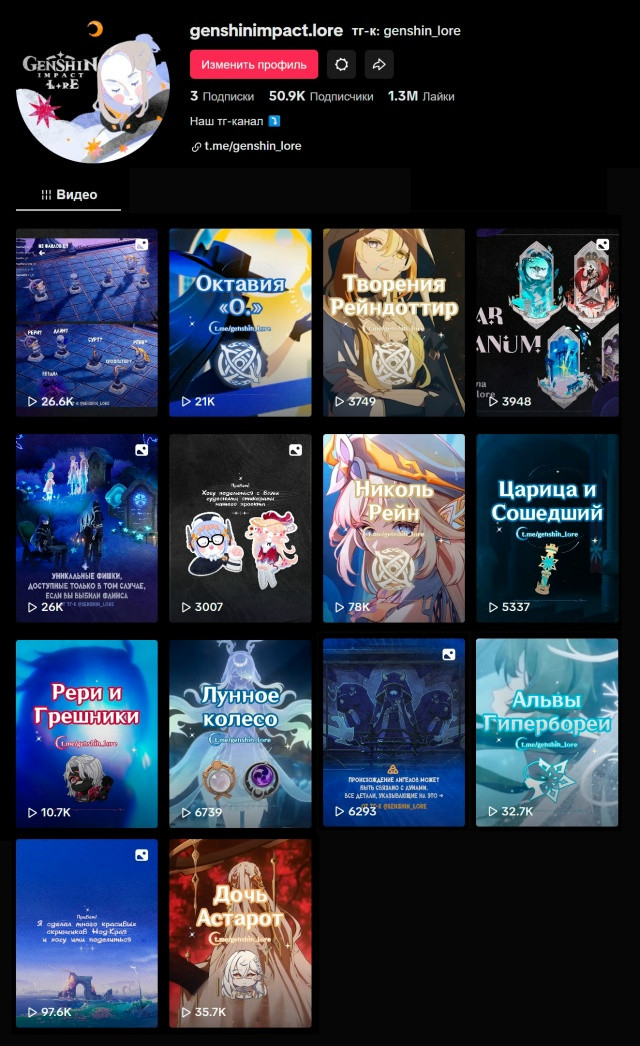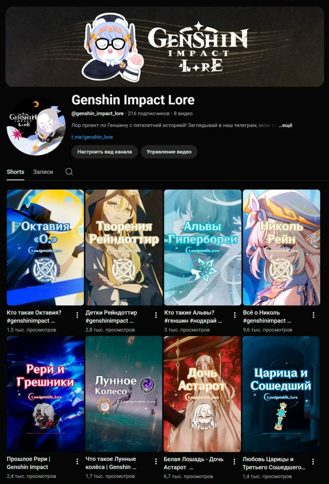 Мы также выпускаем короткие видео в тикток tiktok.com/ @genshinimpact .lore и шортсы youtube.com/genshin_impact_lore