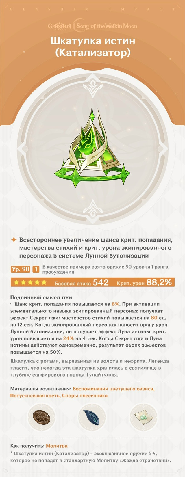 ✉️ Привет! Молитва «Воплощение божества» начнётся после обновления 22 октября. В это время значительно повысится вероятность получения таких видов оружия, как Шкатулка истин (Катализатор) и Блеск тихих вод (Одноручное)!