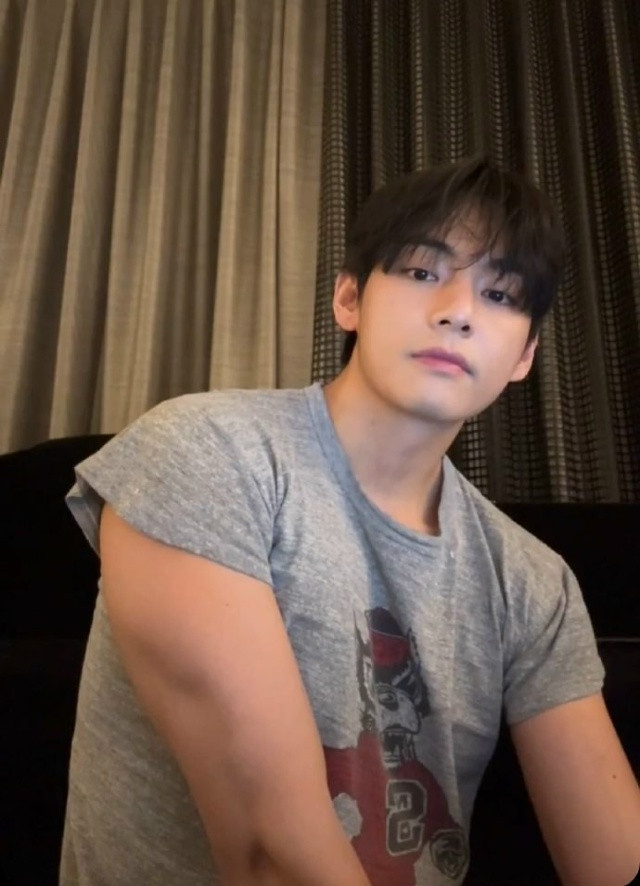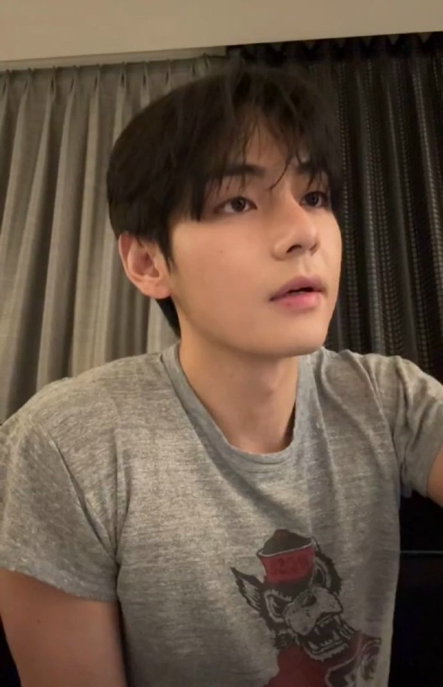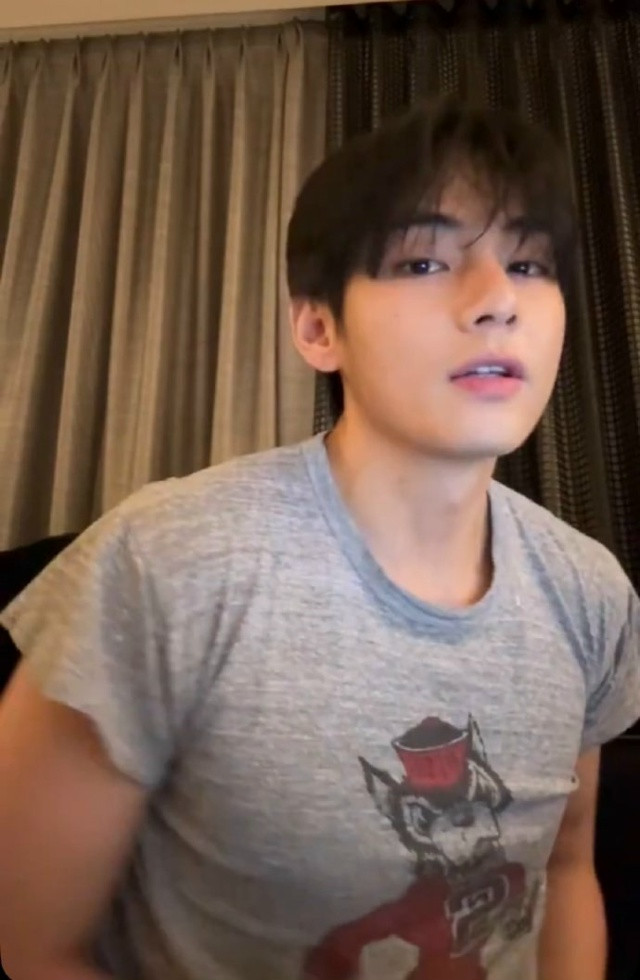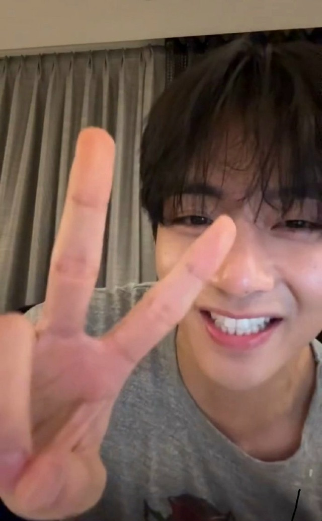 Тэхен на прямой трансляции